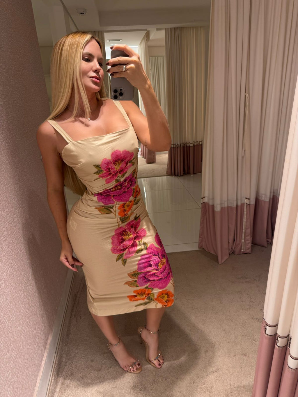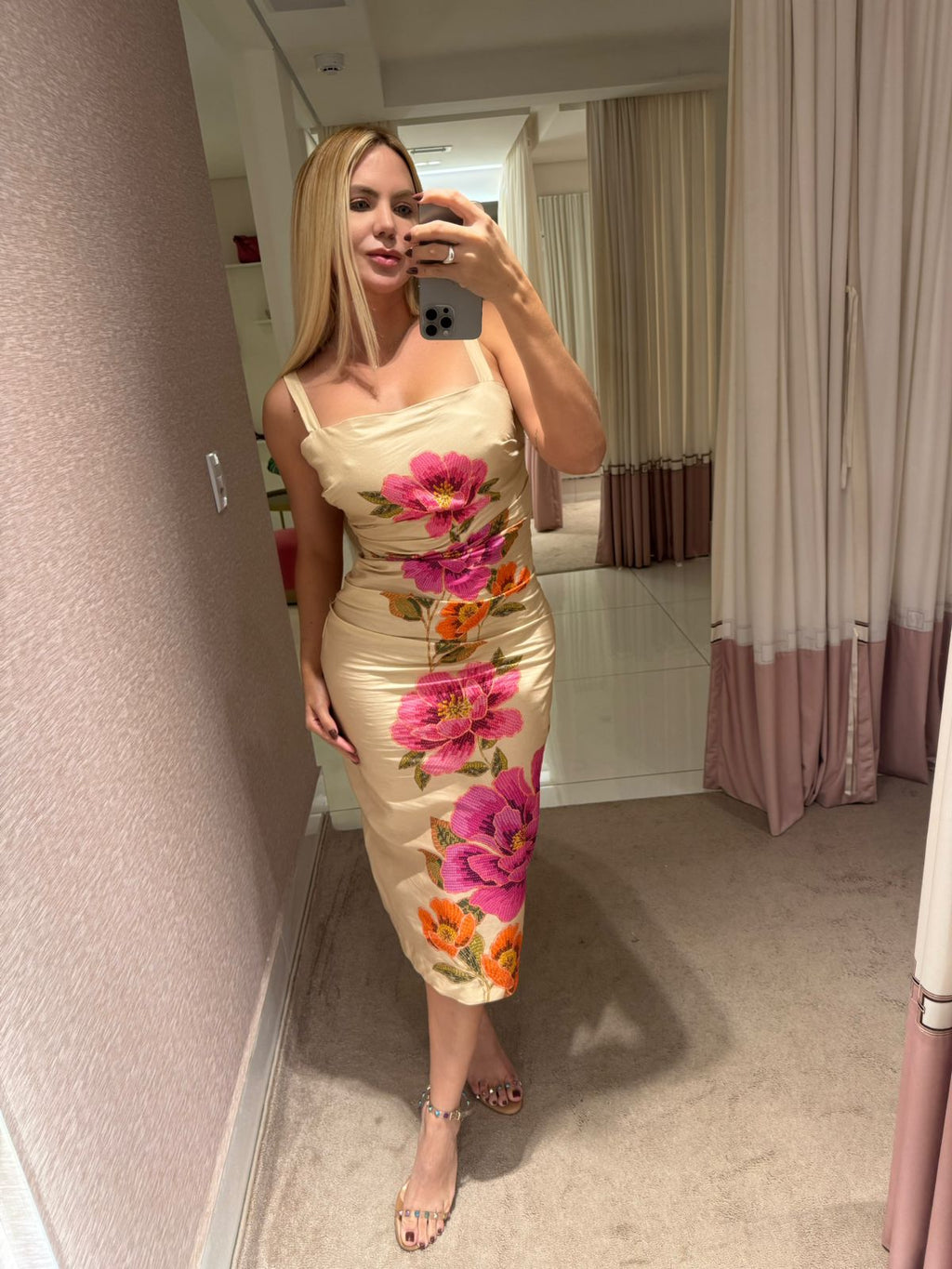 O Vestido Estampado Izabel é a definição de frescor e originalidade. Com alças finas e corte midi, ele traz um charme natural, acompanhando seus movimentos com fluidez e leveza.